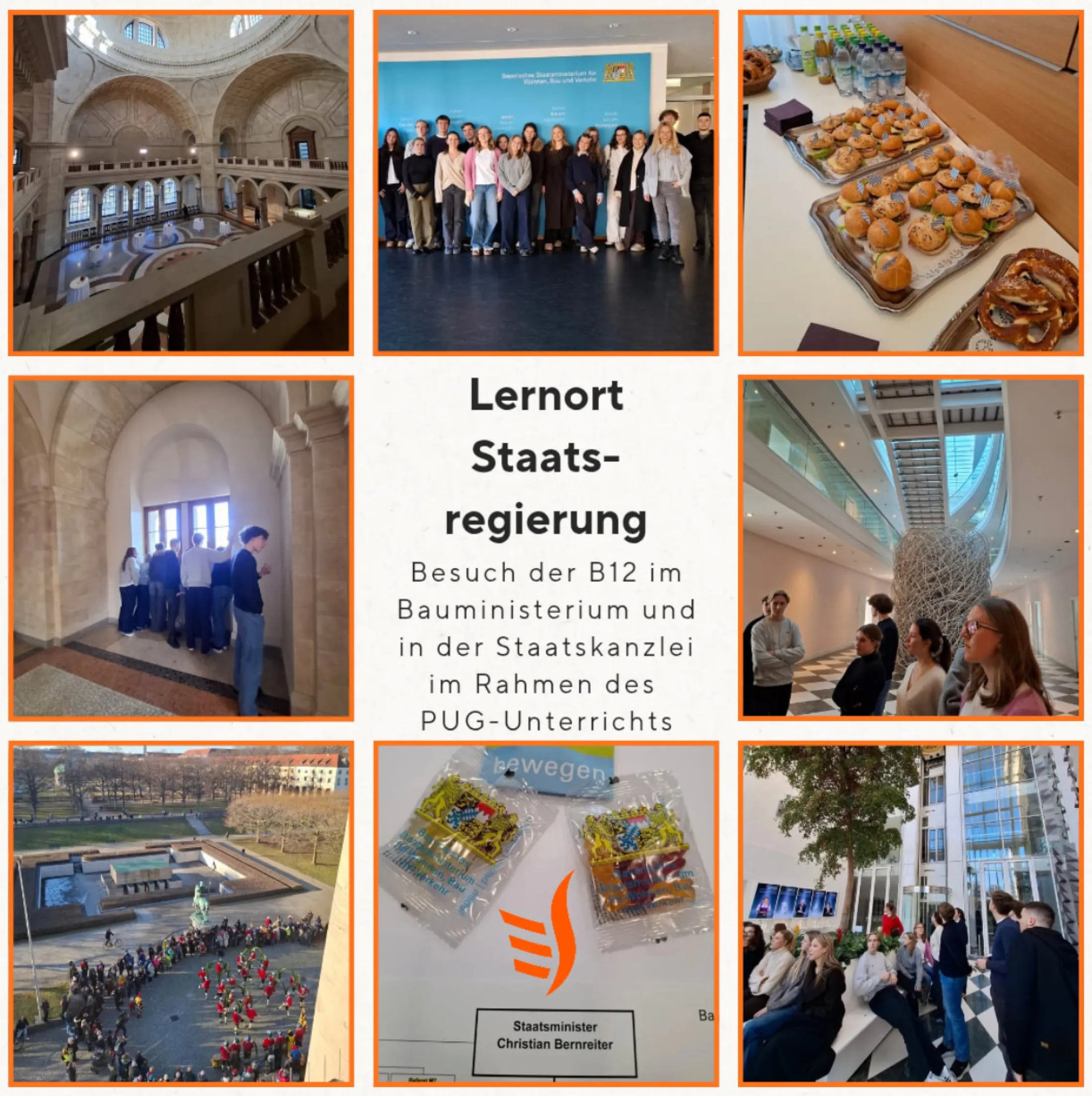 Die Klasse BFS 12 hatte die besondere Gelegenheit, einen Blick hinter die Kulissen der Politik zu werfen. Im Rahmen eines Ausflugs besuchten die Schülerinnen und Schüler die Bayerische Staatskanzlei in München und konnten dort hautnah erleben, wie Regierungsarbeit funktioniert.